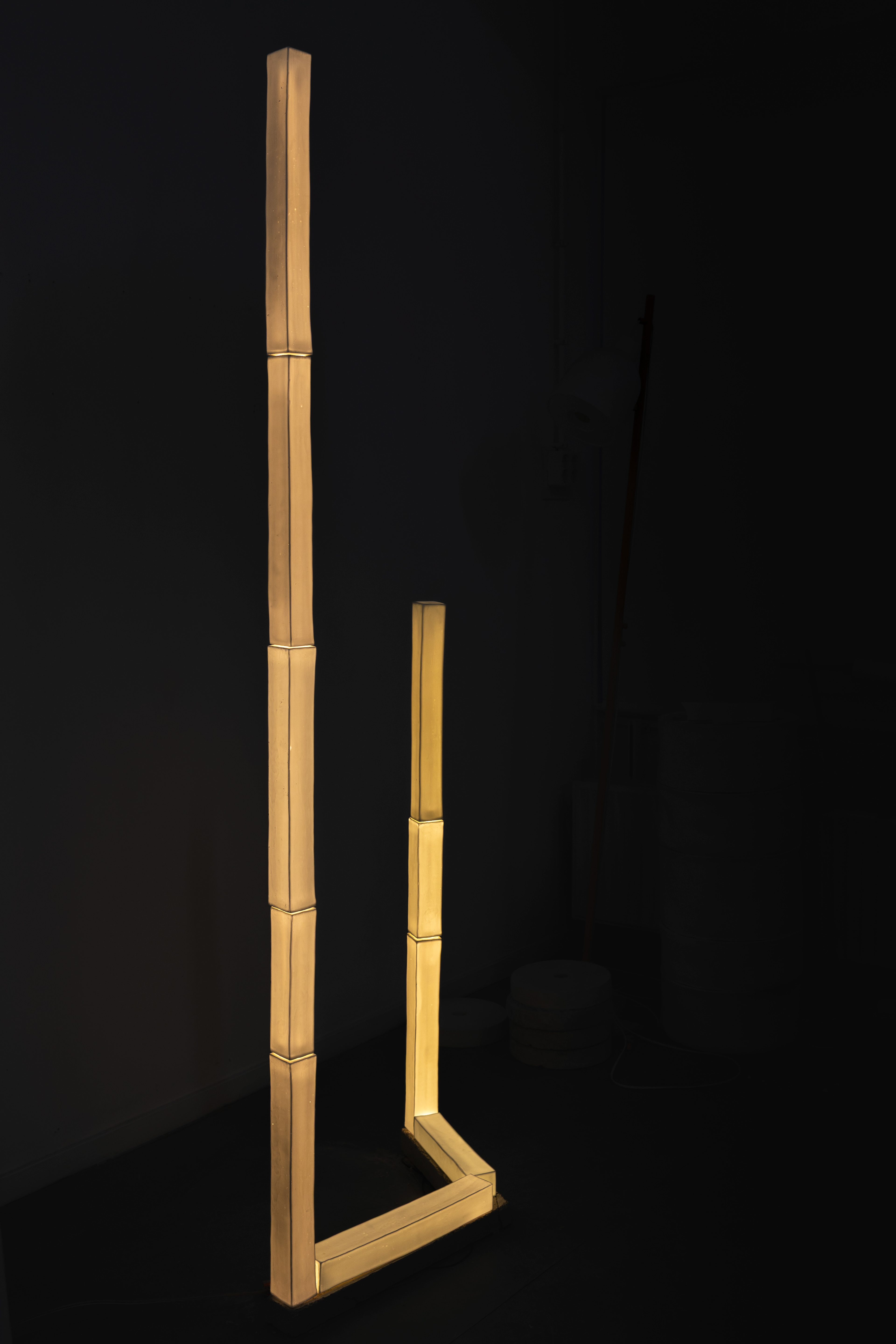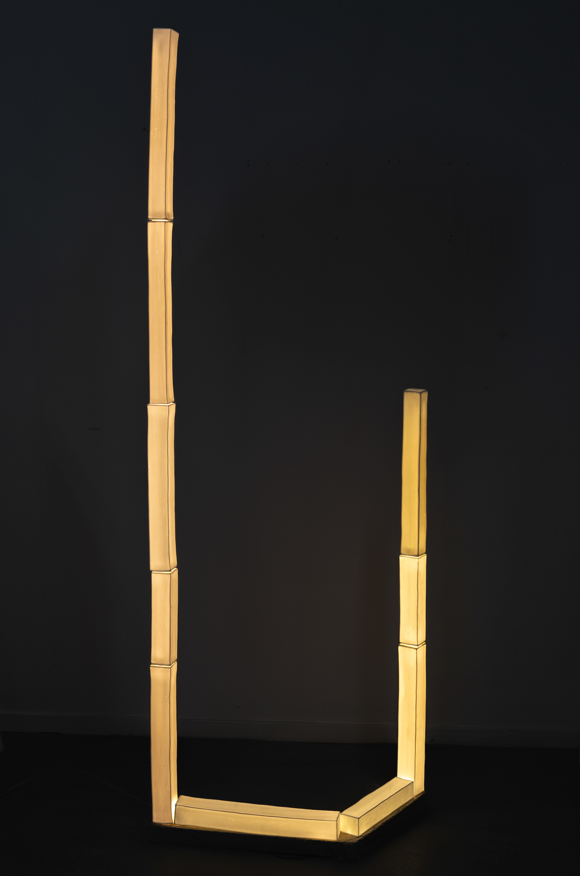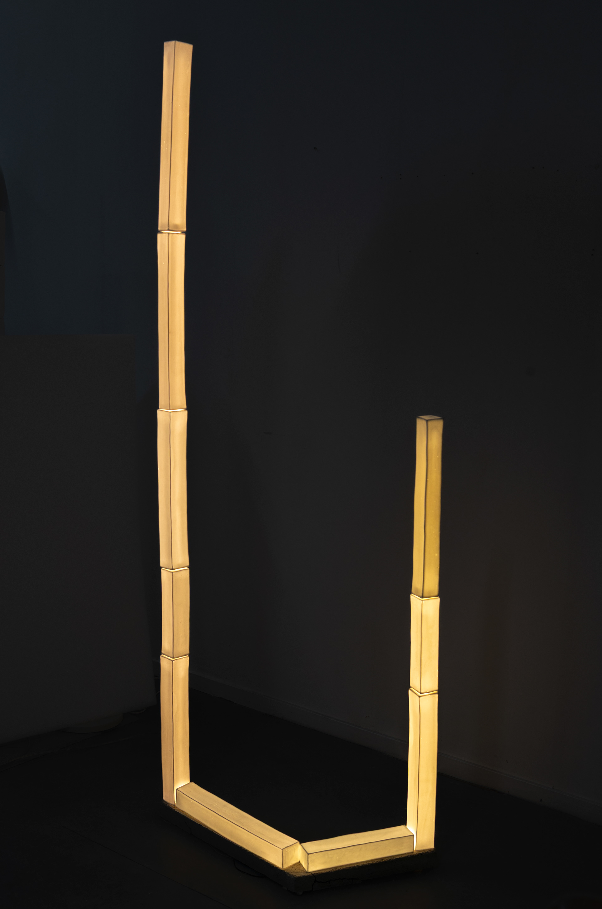 Rectangular bars to build a spatial form, a light sculpture.