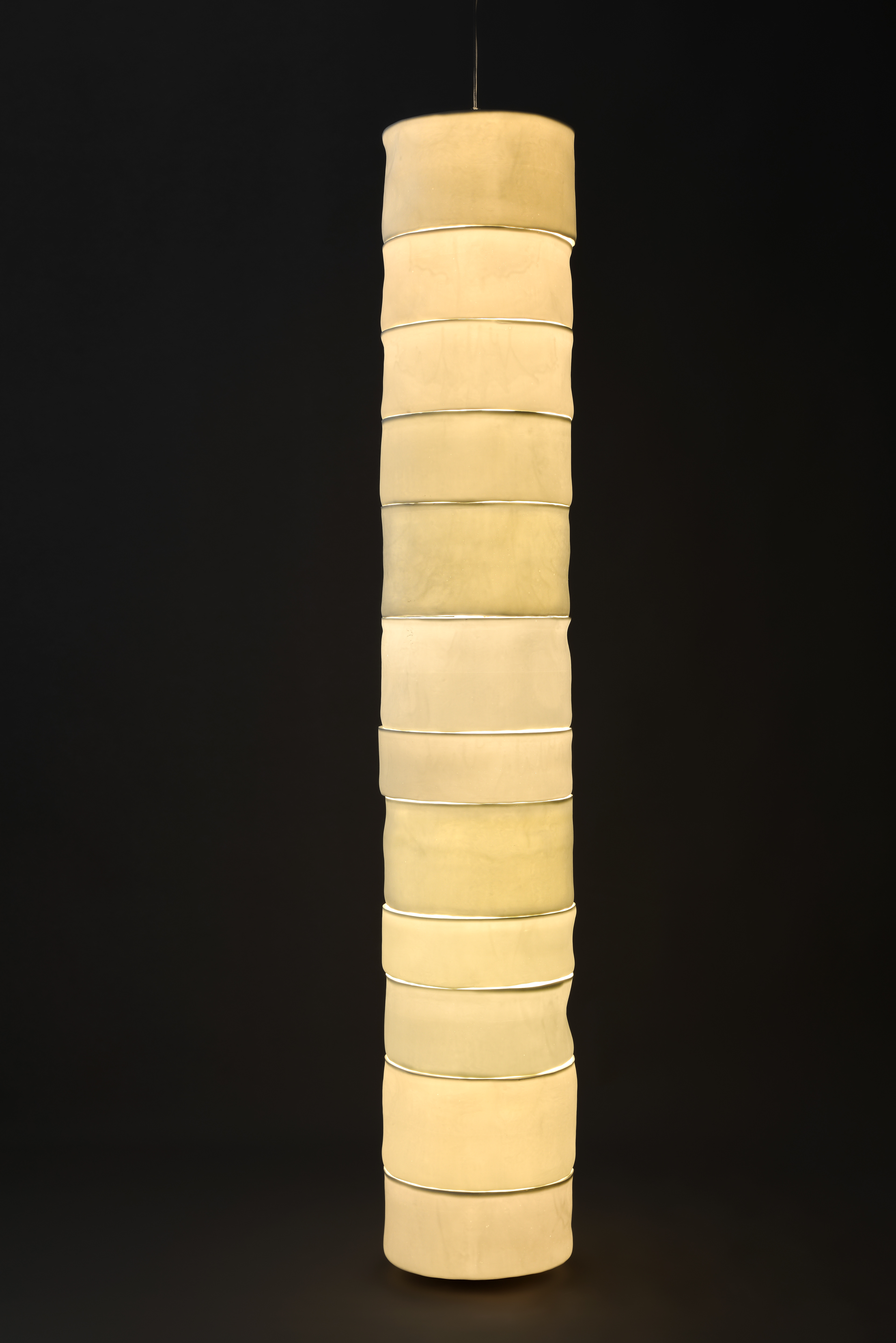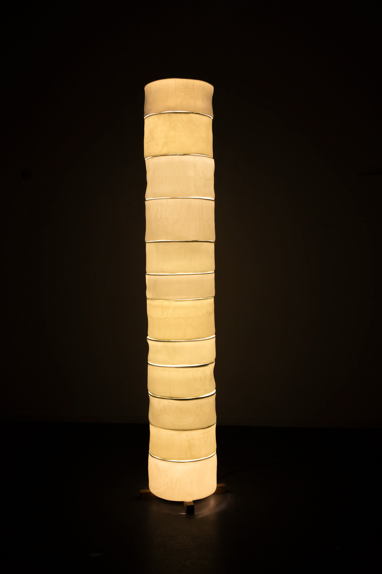 13 bone china parts, beech wood, metal pipe, LEDÂ